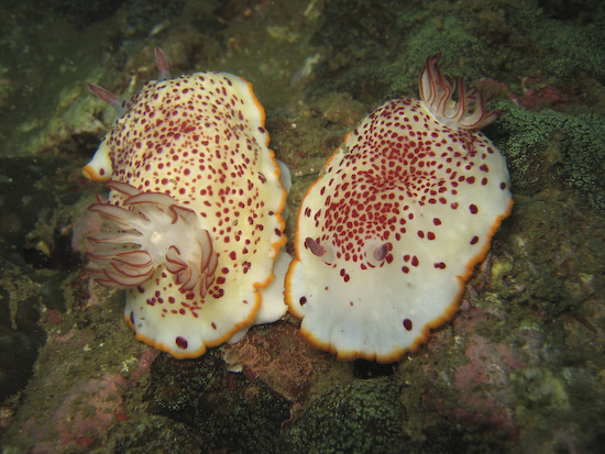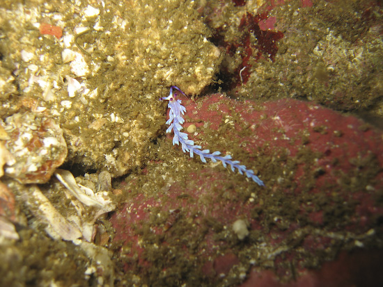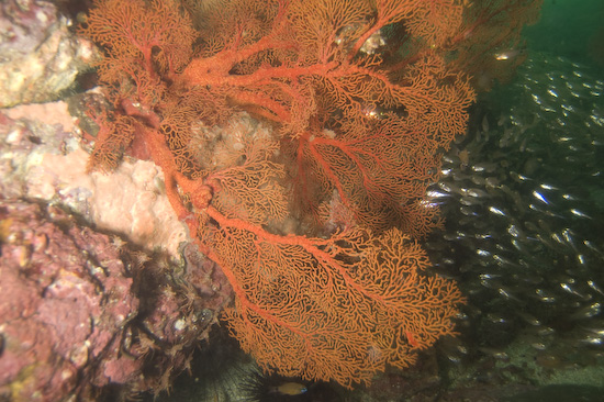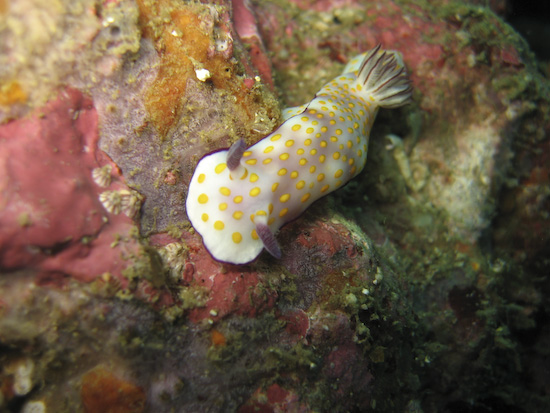 As such, my heart sank a bit when we jumped in and the initial viz was super murky – it was about 3 metres max! However, once Clive located the entrance to the ravine, the viz immediately improved – and apparently this is almost always the case. Inside the opening of the ravine we found a massive Jenkins ray lurking under a rock and several beautiful nudibranches on the walls, before entering into the narrowest section. This area is around 15 metres deep and the light filters through from above, framed by the canyon’s wall and home to an vast school of fish – absolutely breathtaking.