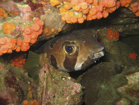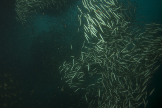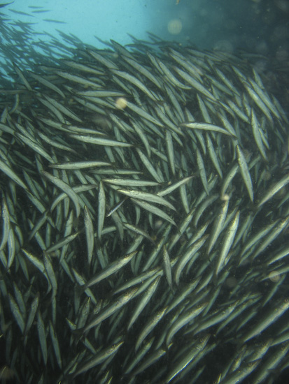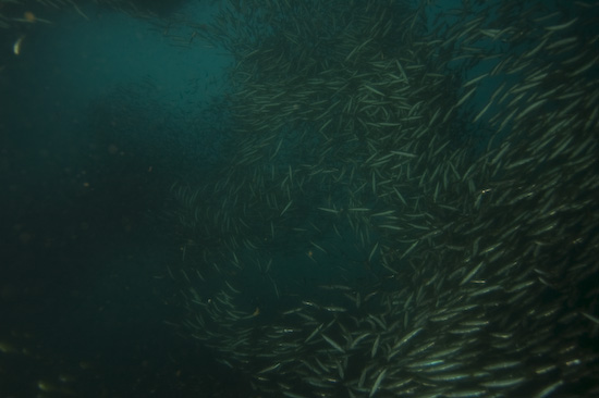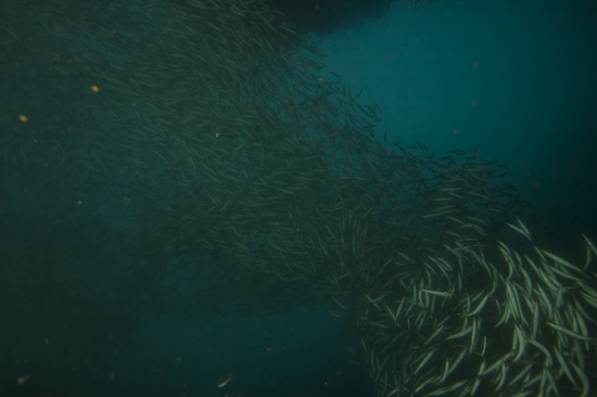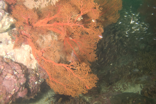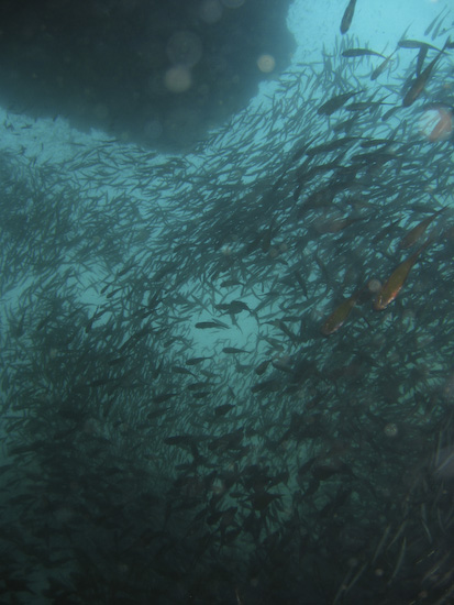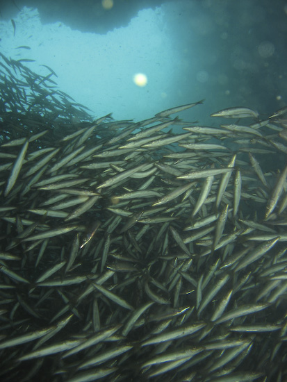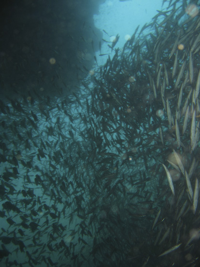 The night dive, repeating the course of the first dive, is high adrenaline due to the presence of very, very large barracuda within the ravine. Duly warned, we entered the ravine again and almost immediately encountered these fearsome metre-long denizens – they were wholly unafraid of us and curious about our torches – so much so it was better to keep them distinctly pointed away from ourselves and each other to avoid getting rammed. I actually headed through the ravine with one hand on my torch and the other on my mask, just in case one of the barracuda got over friendly…
